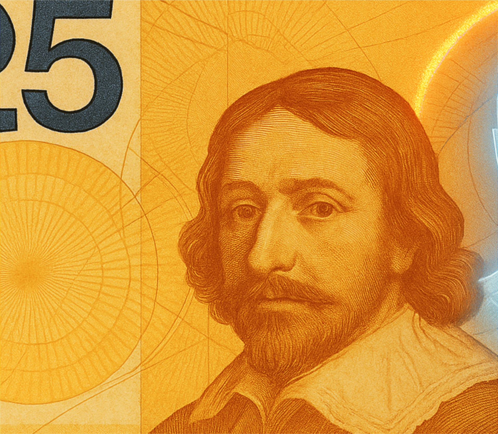 Fragment nieuw briefje 25 gulden met Joost van den Vondel.